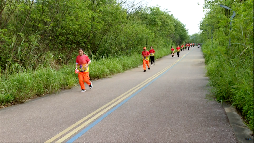 随后,80多位环卫工人和环卫工作者沿着鹿寨山环山步道向前奔跑。全程约5公里,途中,大家尽情在步道上挥洒汗水,享受健步跑带来的激情活力,畅享运动的快乐,用行动展现环卫人的精神面貌与时代风采。