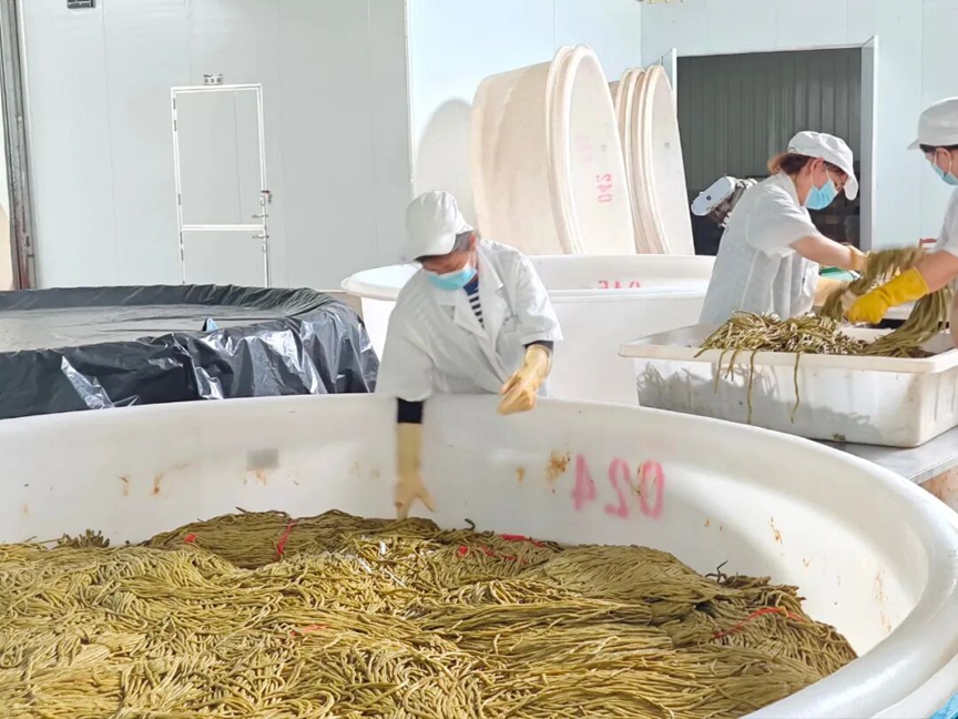 不止是干米粉,酸笋与酸豆角作为螺蛳粉的“灵魂伴侣”,也在我县的生态沃土上焕发生机。柳州森鲜汇农业有限公司作为一家集种植、生产、加工、销售于一体的全产业链企业,常年从周边农户手中收购鲜笋、鲜豆角,以“好山好水出好料”为底气,将当地井水的清甜与老酸水的醇厚融入腌制工艺,经标准化流程制成风味独特的螺蛳粉配料,既解决了农户“种得出、卖得好”的难题,又让中渡的生态优势变成了产品竞争力。
