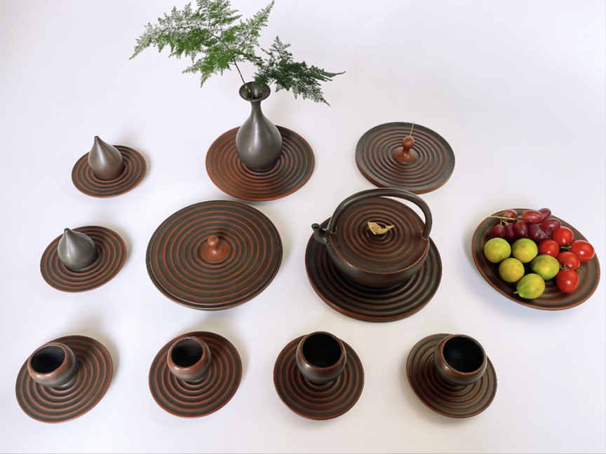 ▲工作室产出的部分陶艺品展示