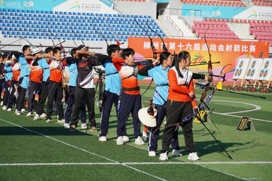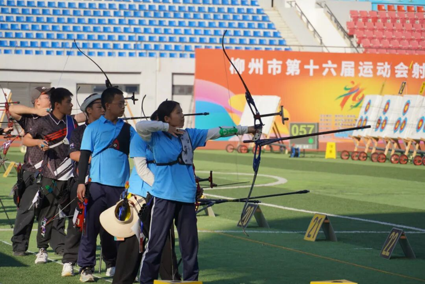 11月15日至16日,2025年柳州市第十六届运动会射箭比赛在鹿寨体育公园体育场举行。来自全市各县区的5支代表队约150名教练员和运动员等齐聚鹿寨,展开为期两天的激烈角逐。