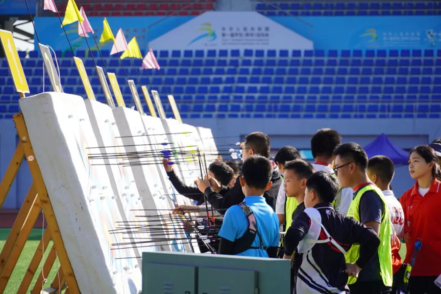 赛场上,运动员们沉着冷静,依次立于起射线前,动作一气呵成——双脚开立、搭箭上弦、勾弦开弓、平稳瞄准、果断撒放。随着弓弦清脆的弹响声,利箭破空而出,划出一道道精准弧线,稳稳命中远处靶心,呈现百步穿杨的激烈场景。记分区内,裁判与工作人员认真核对每一箭成绩,确保比赛公平公正。