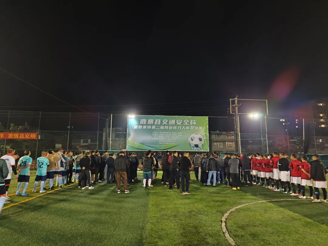 11月17日,鹿寨县“一鹿同行·交通安全杯”暨鹿寨镇第二届商会杯八人制足球赛在巨鹿体育馆燃起战火,14支队伍同场竞技,以足球为纽带共享运动快乐,点燃全民健身热潮。