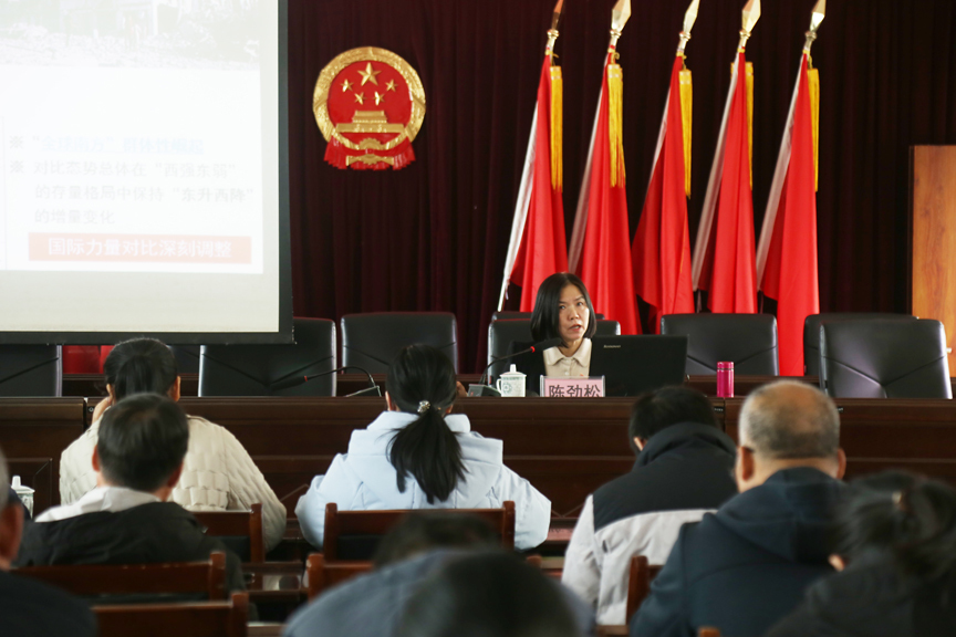 11月20日上午,2025年柳州市学习贯彻《习近平谈治国理政》第五卷专题宣讲报告会在鹿寨县黄冕镇举行。柳州市委党史研究室副主任陈劲松作专题宣讲,黄冕镇全体干部职工、驻村第一书记和村干代表共70余人聆听宣讲。