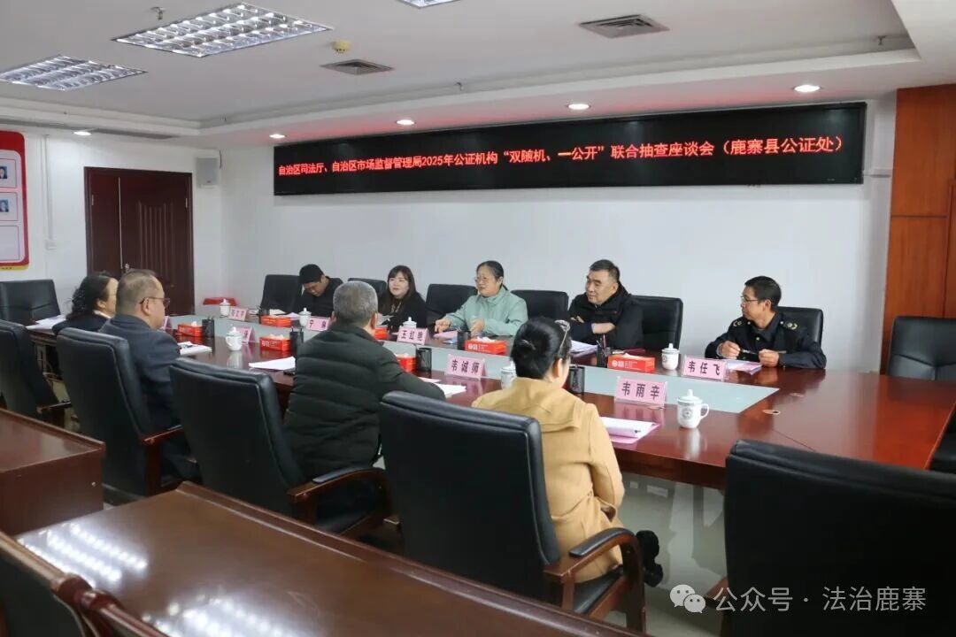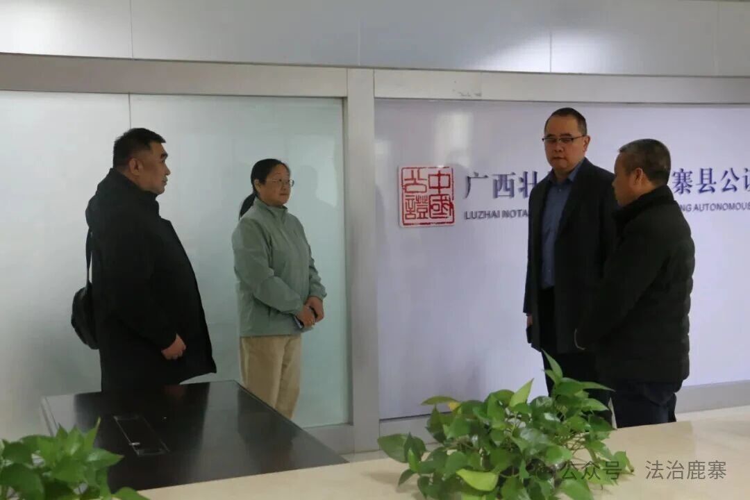 为进一步规范公证执业行为,提升公证服务质量,自治区司法厅、自治区市场监督管理局首次组成联合检查组赴柳州市开展2025年公证机构“双随机、一公开”联合抽查工作。11月20日,自治区司法厅公证和仲裁管理处一级调研员王红艳率领检查组一行5人到鹿寨县公证处开展检查,柳州市司法局党组成员、副局长陈欣陪同。