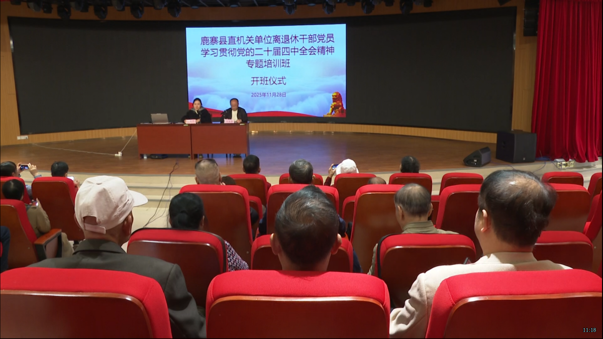 11月28日,县委组织部、县委县直机关工委在中渡镇举办离退休干部党员学习贯彻党的二十届四中全会精神专题培训班,深入学习贯彻党的二十届四中全会精神,进一步强化基层离退休干部党员的政治素养,凝聚老干部、老同志、老党员队伍的奋斗热情,助力鹿寨经济社会高质量发展。