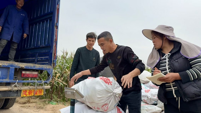在玉米收割季节,许多附近村民加入“玉米帮收队”,参与玉米收割、搬运等工作。