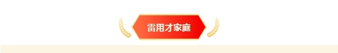 雷用才家庭是温暖和谐、家风优良的典范。夫妻曾为双军人,互敬互爱、爱岗敬业,雷用才现任柳州市中医医院党委副书记、工会主席,其军旅生涯屡获佳绩,转业后深耕基层扶贫与组织工作,获评自治区法治建设先进个人;妻子两度驰援抗疫一线,荣立三等功多次。他们孝亲敬老,悉心培育子女,儿子成长为品学兼优的985大学生。一家人与邻为善,积极参与志愿活动,以真诚善良与勤奋奉献,生动诠释了“最美家庭”爱国爱家、向上向善的深刻内涵。