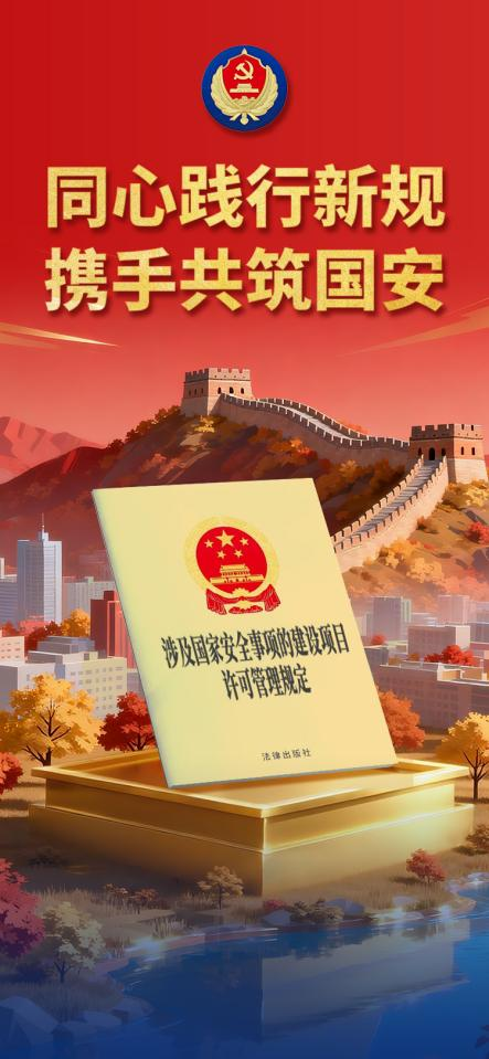 2025年1月15日,由国家安全部联合国家发展和改革委员会、自然资源部、住房和城乡建设部共同制定的《涉及国家安全事项的建设项目许可管理规定》(以下简称“《规定》”)正式出台。一年来,国家安全机关认真贯彻落实规定各项要求,加强与有关部门协作,强化重点要害单位周边建设项目审查和监管,防范有关建设项目被利用实施危害国家安全行为,更好运用法治思维和法治方式维护国家安全,切实实现高水平安全和高质量发展良性互动。