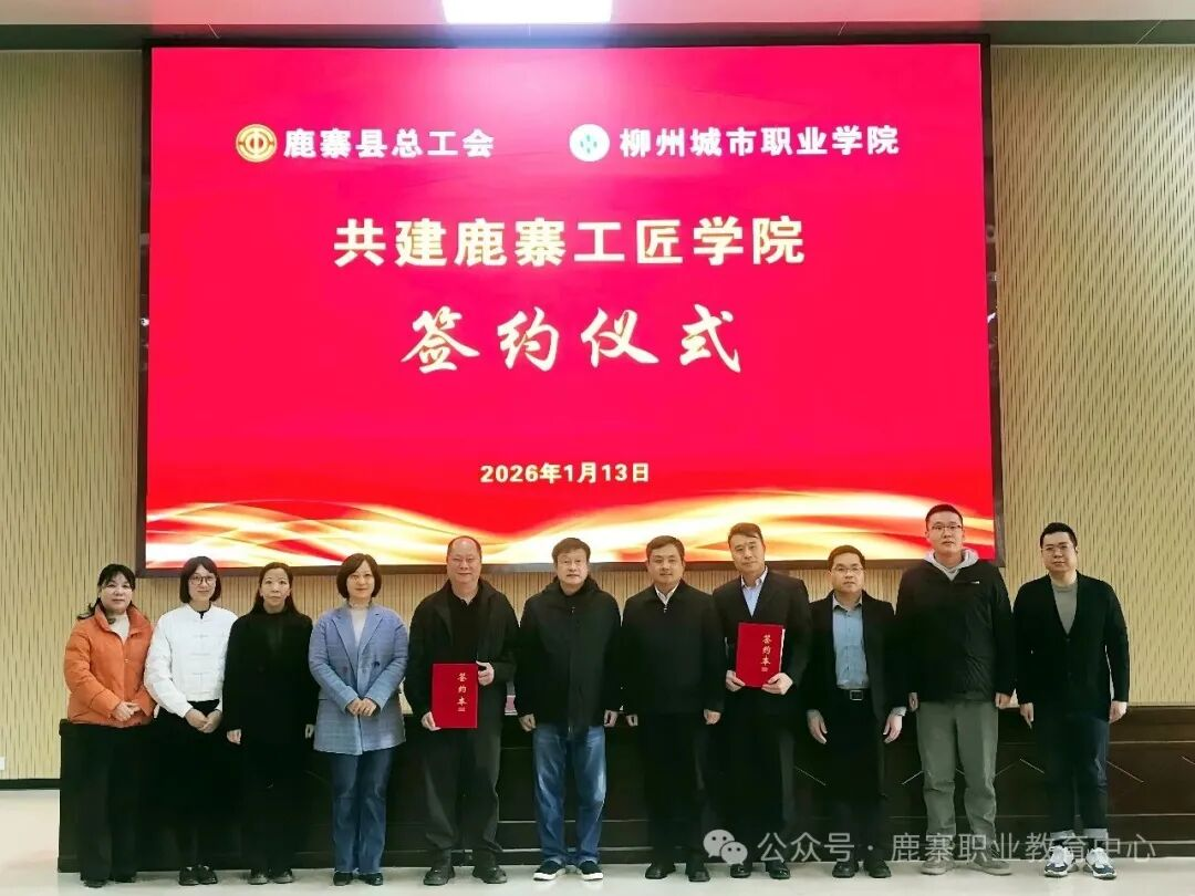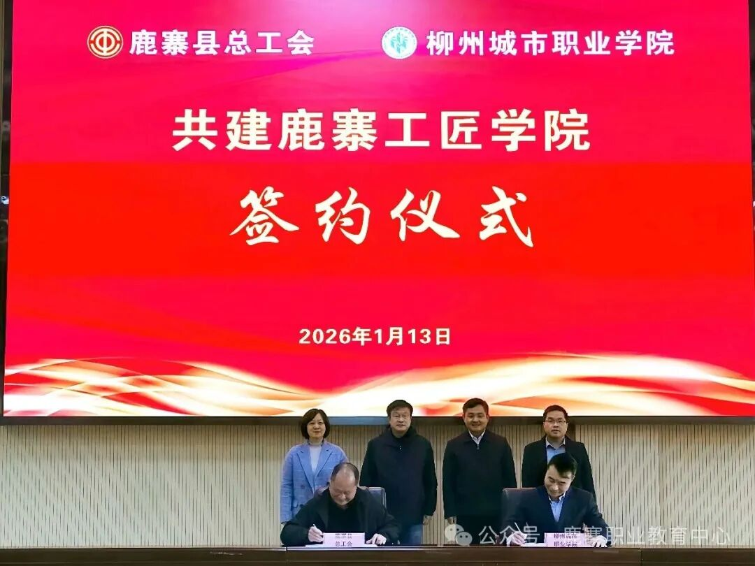 1月13日上午,柳州城市职业学院与鹿寨县总工会共建鹿寨工匠学院签约仪式,在柳州城市职业学院鹿寨分院综合报告厅举行。根据协议,双方将深化校企合作,促进教育链、人才链与产业链深度融合,为鹿寨制造业高质量发展注入强劲的“人才动能”。