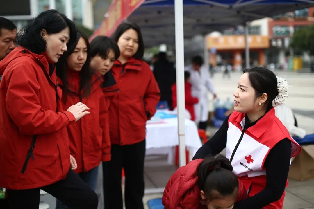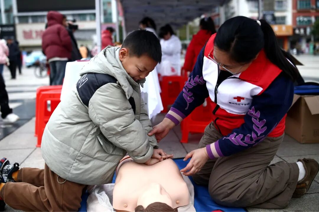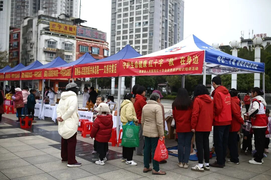 同时,县总工会的工作人员向过往市民宣传、普及相关法律法规知识,增强大家的守法意识与维权意识。县人民医院和县红十字会的医务人员给市民们传授应急救护知识,分步演示心肺复苏术的操作技能,着重讲解海姆立克急救法的适用场景、操作步骤和注意事项,提升大家的应急救护能力,弘扬“人人学急救 急救为人人”的红十字精神。