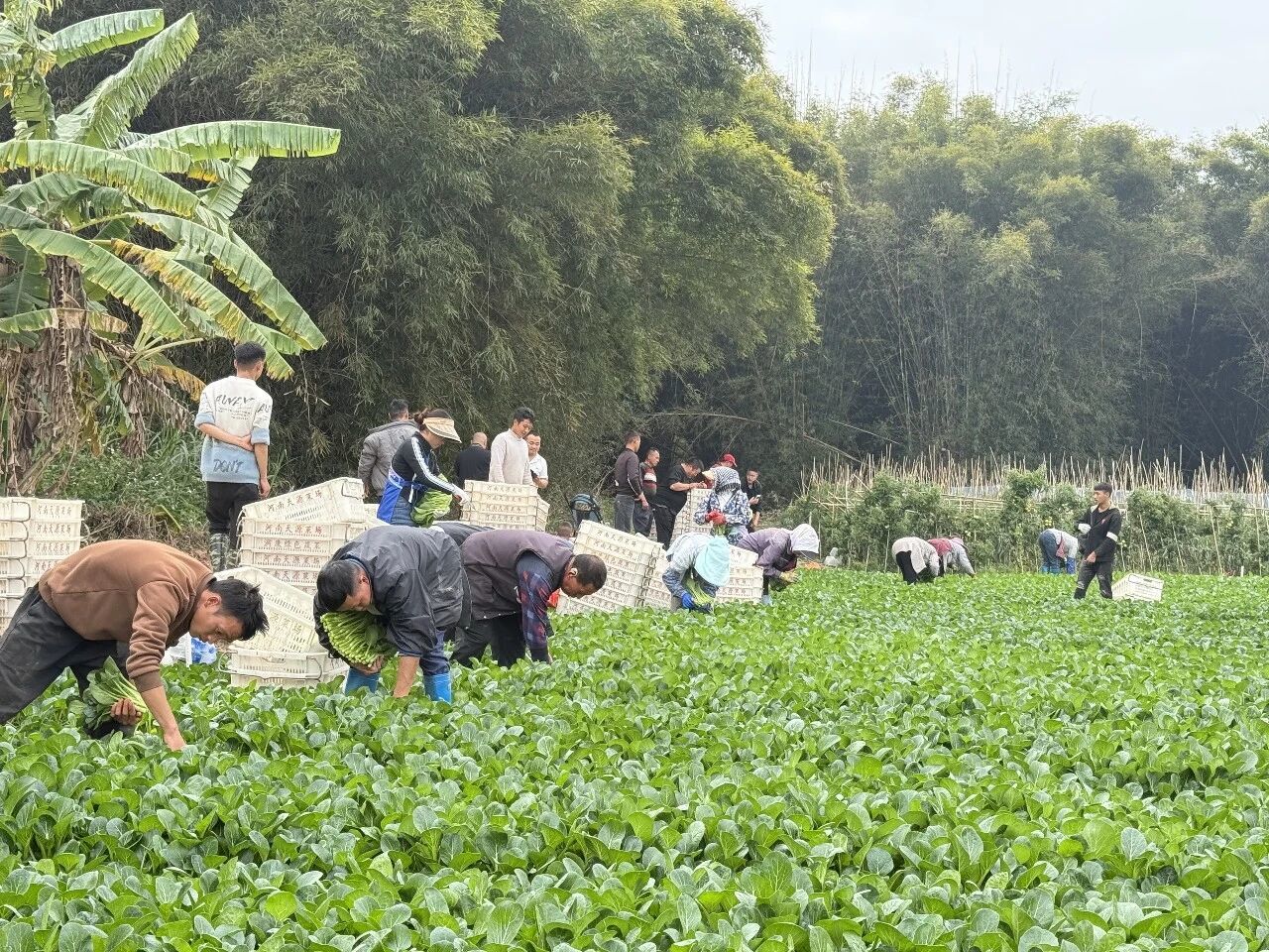 开割现场一片繁忙景象,田垄间绿意盎然,农户们穿梭其间,有条不紊地开展采摘、分拣、装筐等工作,脸上洋溢着丰收的喜悦。乡村干部深入收割一线,与种植户面对面交流,详细询问蔬菜品种选育、日常田间管理、市场产销衔接等情况,精准掌握基地运营中的实际需求,及时协调解决收割环节遇到的问题。同时,工作人员还与种植户共同探讨产业发展规划,研究总结示范经验,为后续扩大种植规模、复制推广模式奠定基础,推动蔬菜产业持续做优做强。