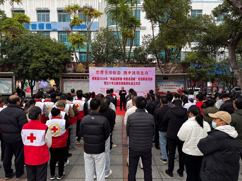 24日正值立春。这天上午,鹿寨县2026年“热血迎新春·博爱送温暖”无偿献血活动暨红十字“三献”志愿服务队成立仪式在城北文化广场举行,为全县无偿献血、造血干细胞捐献、遗体和人体器官捐献事业注入新的公益力量。