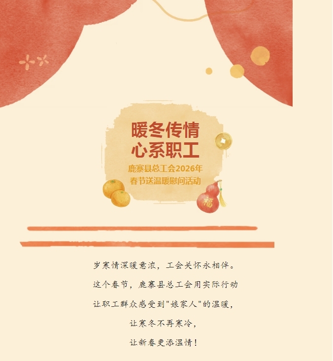 在2026年春节即将到来之际,为切实把党和政府的关怀、工会“娘家人”的温暖送到职工群众心坎上,鹿寨县总工会聚焦在档困难职工、劳模工匠等群体,精心组织开展春节送温暖慰问活动,用实际行动为他们驱散寒意,送上新春的美好祝福。