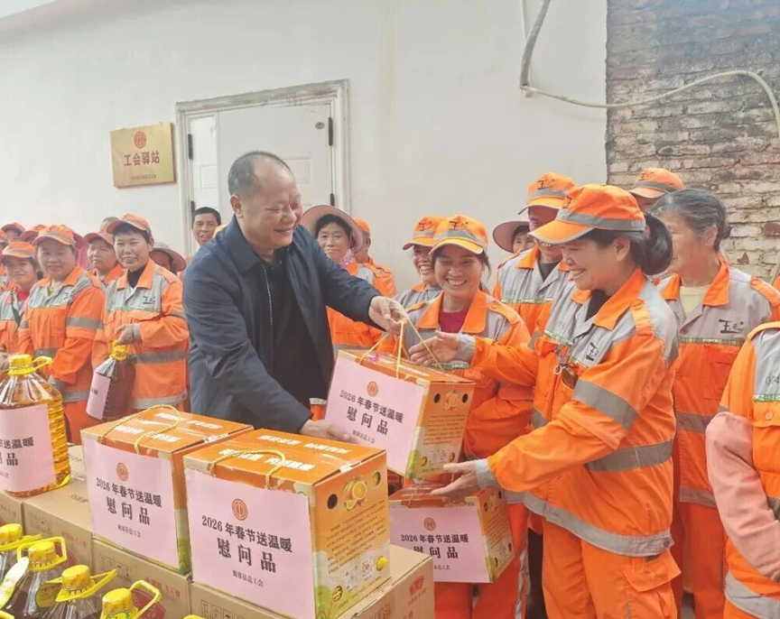 春节期间,当大多数人团聚欢庆之时,环卫工人、公交车司机依然坚守在岗位一线,用辛勤付出保障县城的整洁与出行的畅通。为向这些“最美坚守者”表达敬意,鹿寨县总工会为2026年春节坚守岗位的285名环卫工人、23名公交车司机送去油、蜜橙等实用慰问物资,慰问现场,慰问组与一线职工亲切交流,对他们长期以来为鹿寨县发展和民生保障所作出的贡献表示感谢,同时叮嘱大家在坚守岗位的同时,要注意防寒保暖和自身安全,让一线职工在寒冬中感受到浓浓的关怀与温暖,进一步增强了他们的职业荣誉感和归属感。
