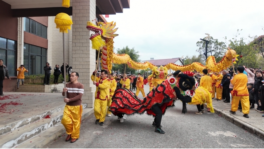 活动现场锣鼓喧天、龙腾狮跃。伴随着铿锵有力的鼓点,祥龙昂首盘旋、瑞狮灵动跳跃。巡游队伍沿着古镇古街前行,为群众表演龙狮拜年,所到之处欢呼声不断。大家纷纷拿出手机记录这一热闹时刻,处处洋溢着团圆、喜庆、祥和的节日气氛。
