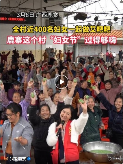 3月8日正值“三八”国际劳动妇女节,鹿寨县鹿寨镇交通村热闹非凡,一场以“巾帼绽芳华建功新时代”为主题的妇女节活动在这里举行。全村近400名妇女欢聚一堂,携手制作传统美食艾粑粑,在欢声笑语中增进邻里感情,让传统民俗文化在指尖代代传承。