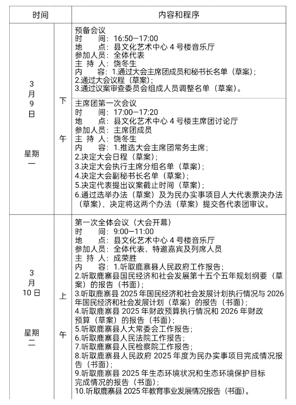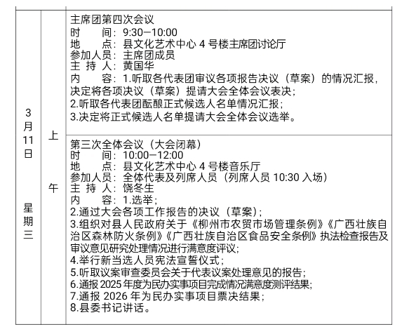 鹿寨县第十八届人民代表大会第七次会议日程