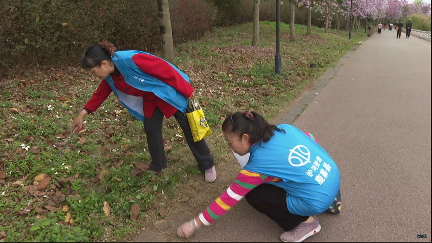 在县城的鹿鸣湖公园,志愿者们分成三个大组,大家手持扫帚、夹子、铲子、镰刀、垃圾袋等工具,对道路垃圾、杂草、白色塑料物等进行清理。大家热情高涨、干劲十足,显示了饱满的热情和积极的状态。在大家的共同努力下,公园洋溢着清新与整洁的气息。