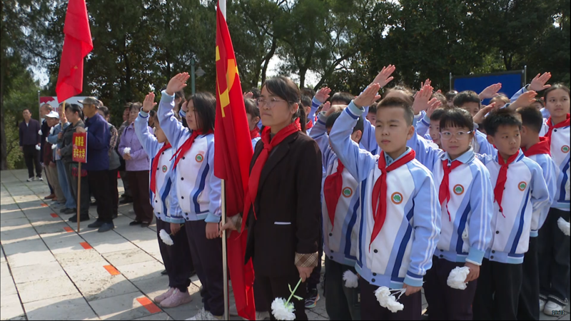 祭扫仪式上,少先队员代表向革命烈士纪念碑敬献花圈。全体人员庄重行礼,默哀致敬,回顾英烈事迹,寄托深深哀思。少先队员们齐声高唱《中国少年先锋队队歌》,激昂的歌声尽显少年朝气与坚定信念。最后,大家手持小白花,依次绕行纪念碑一周,将白花轻轻放在纪念碑基座前。