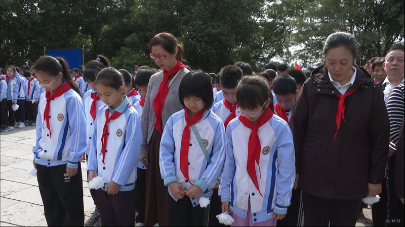 鹿寨小学学生韦煜童说:“我们要永远铭记他们的丰功伟绩,珍惜美好幸福生活,努力成长为有理想、有本领、有担当、有道德、有纪律的新时代好少年。”