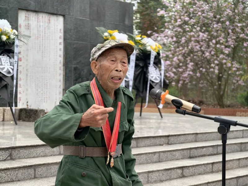 在活动中,江口中心校老师深情讲述革命英雄事迹,带领大家重温那段波澜壮阔的革命岁月,感悟革命先辈们的坚定信仰与家国情怀。90多岁的抗美援朝老兵莫兆明也结合自身经历,用朴实真挚的语言,讲述了战场上的峥嵘岁月,再现了革命先辈们不畏强敌、浴血奋战的英雄气概,让在场人员深受触动,接受了一次深刻的党史学习教育和爱国主义洗礼。