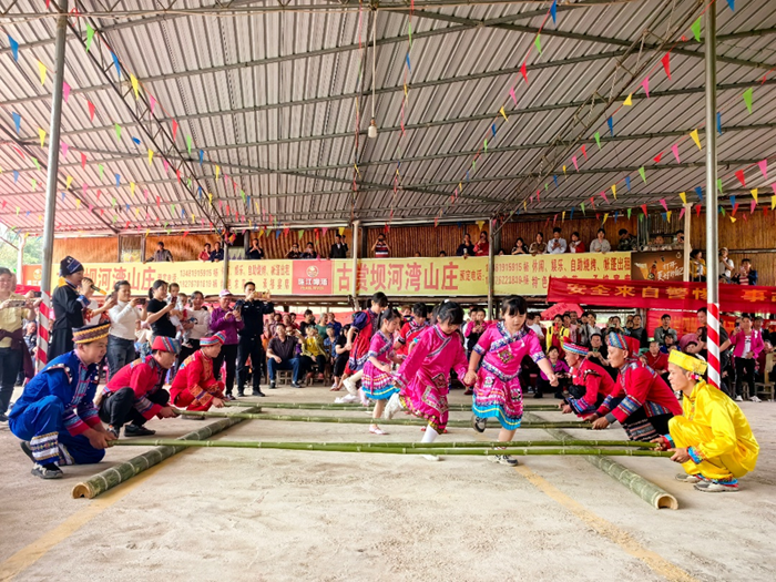 歌起三月三,情满古赏村。让我们相约堰坝广场,赏民俗、品美食、赛风采、话团结,共同度过一个欢乐祥和、独具特色的壮族三月三!快约亲朋好友来感受古赏独特魅力!超燃氛围,等你来体验!(张明玉)