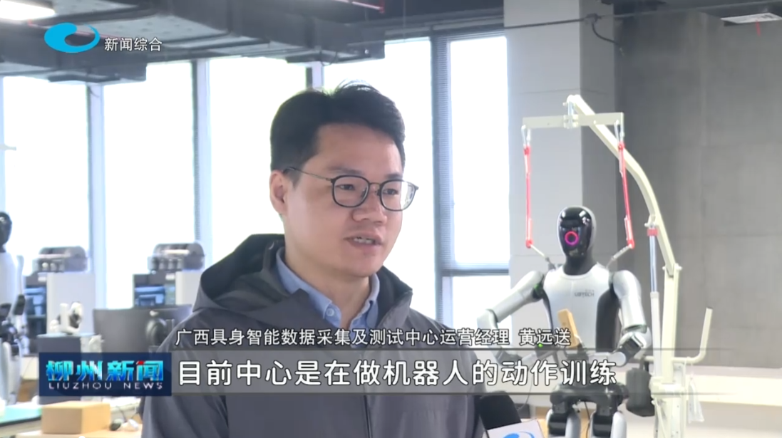 广西具身智能数据采集及测试中心运营经理黄远送说:“目前中心是在做机器人的动作训练和场景训练,做一个数据的累积的采集。相当于我们机器人的一个训练学校,那它们机器人出厂之后,其实它们也只是一个钢铁的躯壳,它们里面的大脑还不具备一些技能。还有一些场景的动作,那么到我们这边,之后我们会去到一些柳州经典的工业场景里面去,比如说汽车分拣,还有食品的包装。这些我们都会去采集回来,然后交给这些机器人,由我们的训练师一个人教一台机器人,让它去做精细化的一些分拣的动作。”