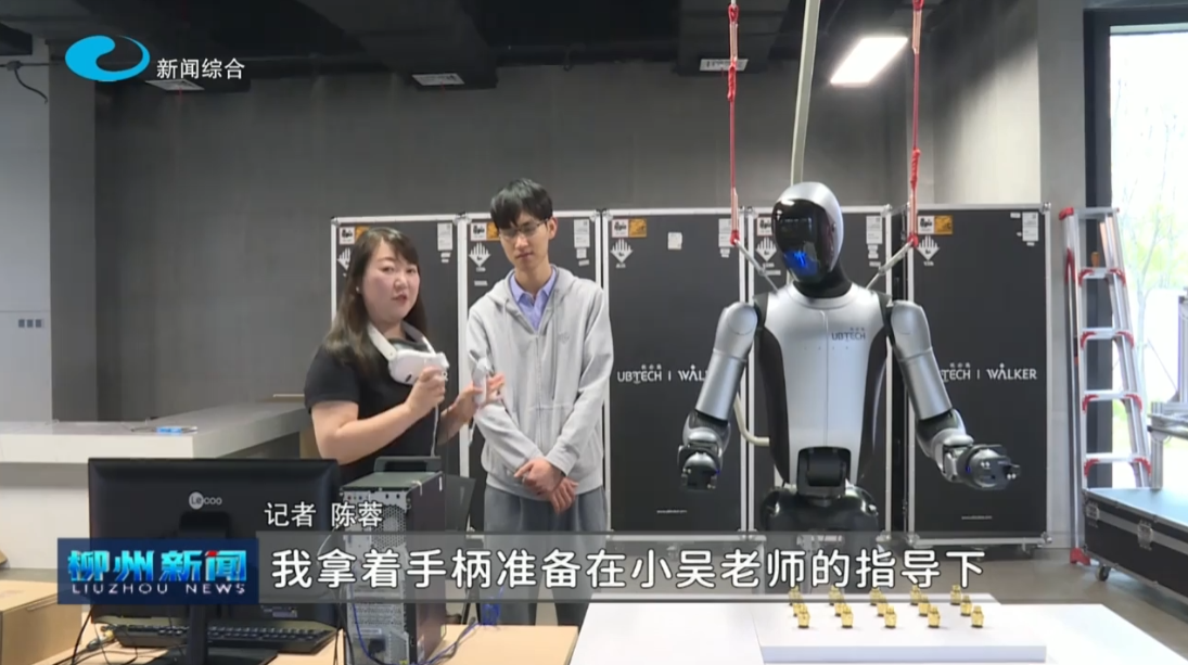 记者陈蓉说:“大家看到了,我拿着手柄准备在小吴老师的指导下,教walker S2在工厂里的分拣以及夹取的一个工作,那我们要用手柄先抓住它,然后下压……这个工作还是非常难的,就是一个很简单的抓取工作,我的手都捏了一把汗,而且是试了两次才成功的。那我们想问问平常教这些walker S2会做哪些?”