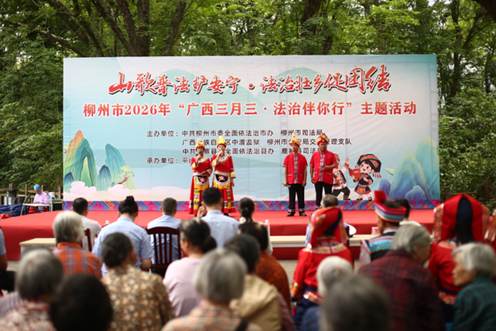 “骗子手段千千万,头脑清醒切莫贪;大家共同反诈骗,骗术再高也翻船……”4月14日,柳州市2026年“广西三月三·法治伴你行”主题活动在我县平山镇山歌文化主题公园火热开唱。活动以群众喜闻乐见的山歌形式,将宪法、民法典等法律知识融入山歌旋律,为当地群众送上一场接地气的法治文化大餐。