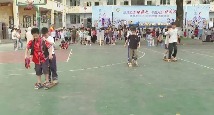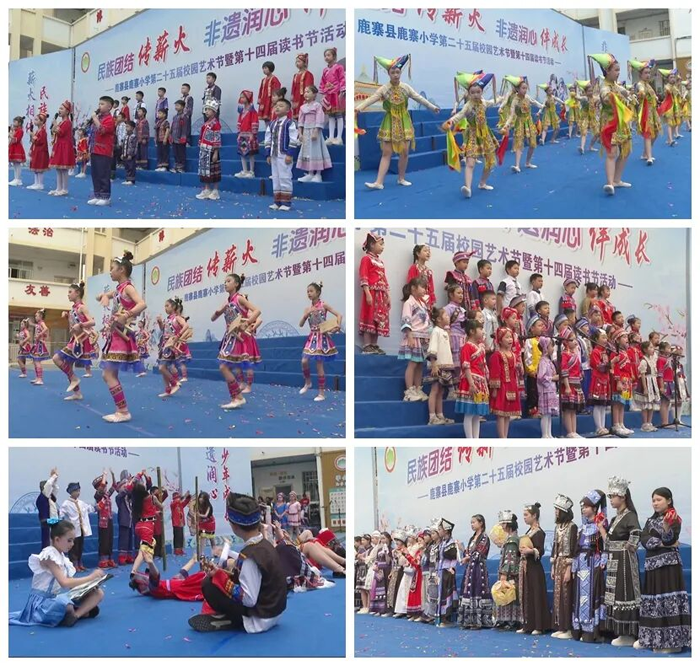 4月14日至15日,鹿寨小学以“民族团结传薪火·非遗润心伴成长”为主题,举办第二十五届校园艺术节暨第十四届读书节活动。在文艺汇演中,各班以民族童谣朗诵、歌曲合唱、舞蹈表演、服装走秀等形式,上演了《多彩广西民族芬芳》《绣球欢歌》等24个节目,传递淳朴民族情感。此外,学校还精心组织了投壶、走板鞋、跳竹竿、制作漆扇等10多项民俗体验活动,整个校园洋溢着浓厚的节日气氛。