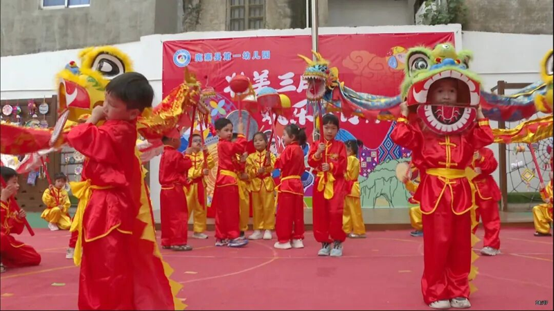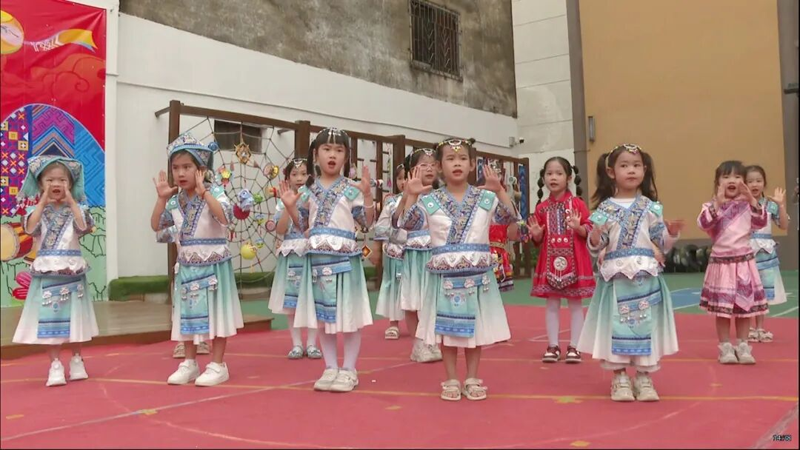 4月15日,鹿寨县第一幼儿园师生身着节日盛装欢聚一堂,上演了壮族打龙、敬酒舞、寨沙过街溜等节目,孩子们还体验了绘彩蛋、舂糍粑、抛绣球等传统民俗,共享壮乡美食,体悟阖家团聚的温情,进一步铸牢中华民族共同体意识。
