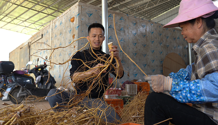 目前,合作社已形成种植、加工、销售完整链条。采收后的五指毛桃根据市场需求,一部分将直接售卖鲜品,另一部分则运至加工厂制成干品。经过深加工的产品附加值大幅提升,远销区内外,客户资源稳定。合作社不仅为当地农户提供了稳定增收渠道,更激活了乡村振兴内生动力,有效推动全县中药材产业持续健康发展。