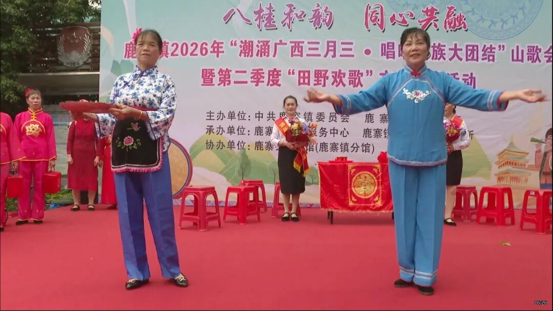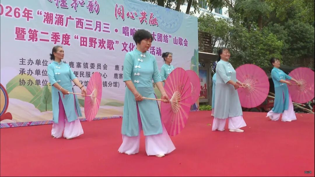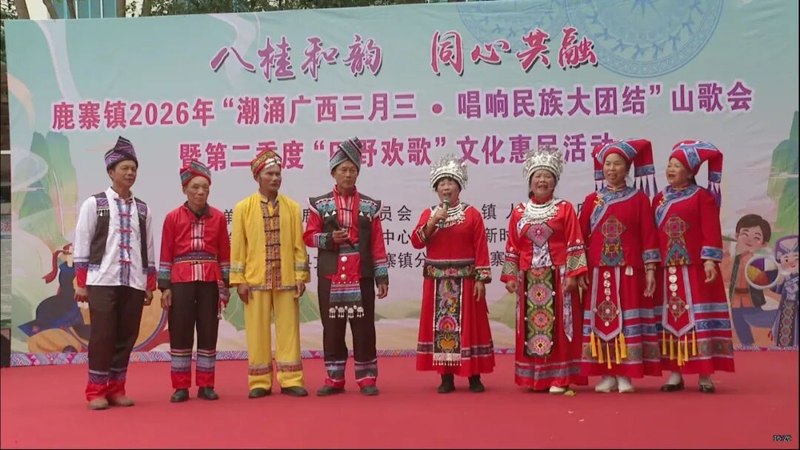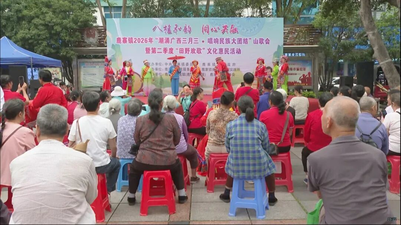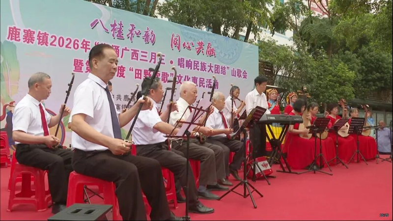 春暖花开三月三,八桂大地歌如潮。4月16日,“八桂和韵·同心共融”2026年鹿寨镇“潮涌广西三月三·唱响民族大团结”山歌会暨第二季度“田野欢歌”文化惠民活动在县城北文化广场启幕,演员们载歌载舞欢庆民族盛会,营造民族传统节日的浓厚氛围。