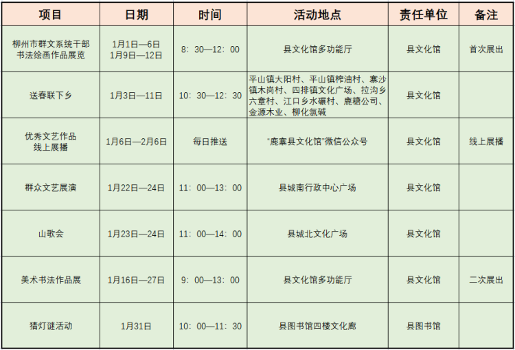 还有之前预告的系列春节文化活动,大家记得参加哟!