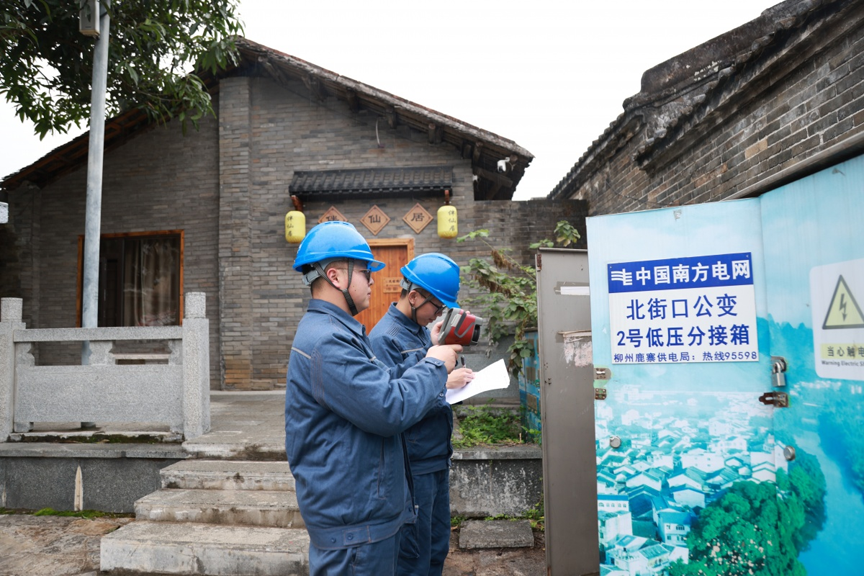春节临近,为确保节日期间电网安全稳定运行、城乡居民用电无忧,南方电网广西柳州鹿寨供电局结合用电负荷特点和节日活动安排,对关键线路、设备开展拉网式排查,以“满格电”护航万家灯火。
