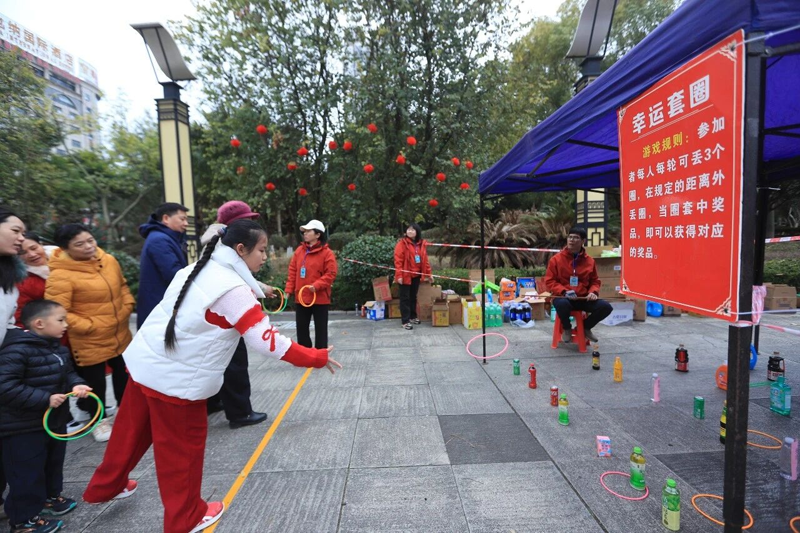 活动现场热闹非凡、暖意融融。本次游园会设置了开心轮盘、小猫钓鱼、六六大顺、幸运套圈等多项集趣味性、挑战性、健身性于一体的趣味游园活动。“最佳投手”模拟飞镖技巧,游戏者尽力将手中的小塑料球投向靶子;“幸运套圈”比的是手上功夫,看谁的塑料圈投得稳、准,套得住琳琅满目的奖品;“弹珠迷宫”和“小猫钓鱼”考验手眼协调能力和足够的耐心;而“开心轮盘”和“六六大顺”玩的是手感、运气和技巧。