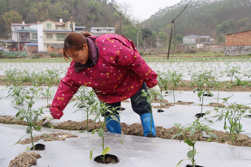一年之计在于春,春耕备耕正当时。近日,鹿寨县鹿寨镇广袤田野,处处可见农户忙碌的身影,耙田整地、栽种辣椒、覆膜保墒等农事有序开展,一幅热火朝天的春耕画卷徐徐展开,乡村大地焕发出勃勃生机。(廖茂荣)