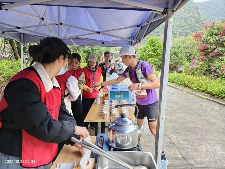 50公里组男子组冠军叶朝阳说:“非常高兴能拿到这次比赛的冠军,我也是鹿寨本地的选手,今天整体发挥也稳定。这个赛道有一定的难度,但是它风景特别漂亮,因为它穿过香桥岩、大草原,还有石林等很多地方,特别推荐大家来我们中渡徒步旅游。路上有很多志愿者,消防员、警察、医护人员等,有他们给我们护航,我们比赛就很安心、放心,他们很辛苦,谢谢他们。”