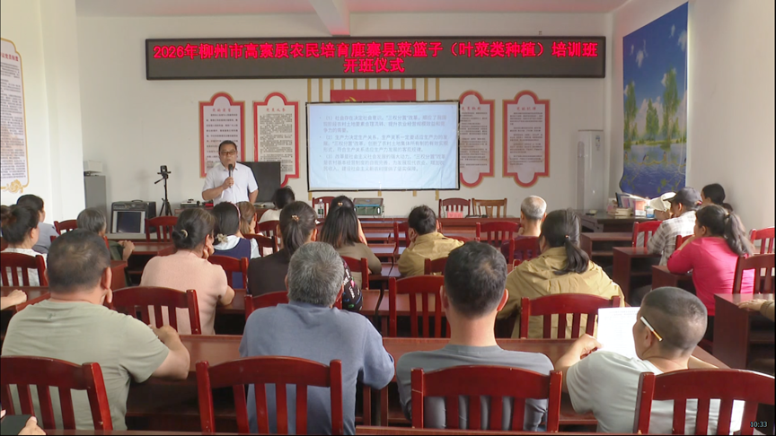 4月8日,2026年柳州市高素质农民培育鹿寨县菜篮子(叶菜类种植)培训班在中渡镇福龙村开班,进一步提升农民农业专业技能与综合素养,推动农业技术升级,为我县农业现代化、乡村全面振兴筑牢人才根基。