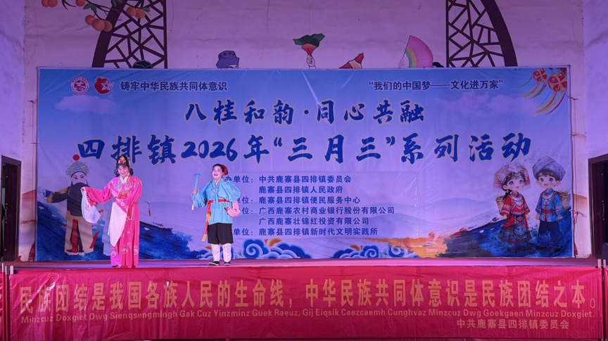 春风拂壮乡,曲韵满乡野。4月15日晚,鹿寨县四排镇文化广场灯火辉煌,锣鼓喧天。伴随着铿锵的锣点和悠扬的胡琴声,四排镇2026年“八桂和韵·同心共融”三月三彩调汇演拉开帷幕。当地5支彩调队的60余名演员粉墨登场,生旦净丑轮番亮相,唱念做打精彩纷呈,为乡亲们献上了一场沉浸式的民俗文化大餐。