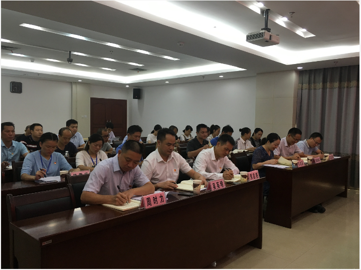 县委主题教育第一巡回指导小组组长韦娜到会指导。熊启尧、韦鸿英等在家的县政府领导参加会议。