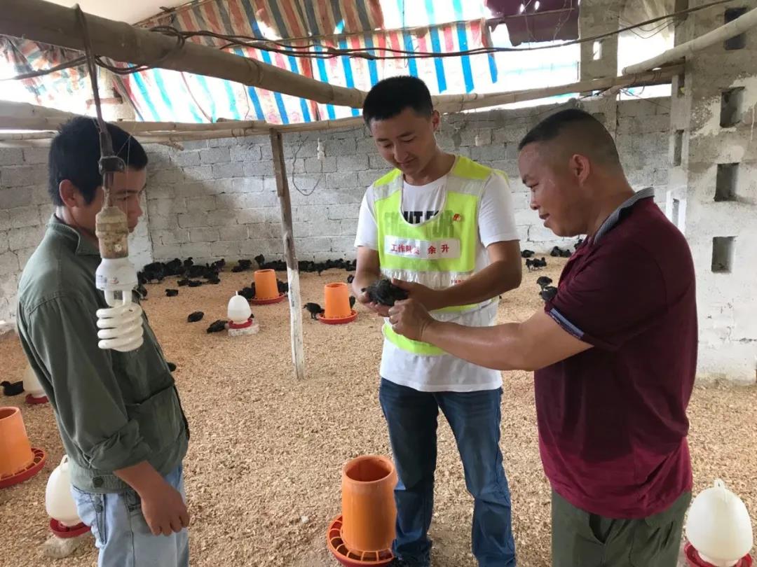 “五黑鸡绿壳蛋”是鹿寨县龙群种养专业合作社其中的一个产业项目,该合作社由黄坭村致富带头人韦冬成及其他成员共6人(其中5户建档立卡户)牵头发起,采取“企业+合作社+基地+农户(贫困户)”的种养殖产业基础扶贫模式,是一家集水果、蔬菜种植、蛋鸡养殖相结合为一体的现代化、规模化的种养殖农民专业合作社。其中的“五黑鸡绿壳蛋”扶贫项目厂房占地800多平方米,现养殖有五黑鸡3000余羽,从去年10月份开始产蛋至今,日平均产蛋1000枚,目前已有六家定点采购签约客户,线上零售也是供不应求,已销售五黑鸡绿壳蛋5000盒,销售额达30多万元,人均增收达到1万多元。