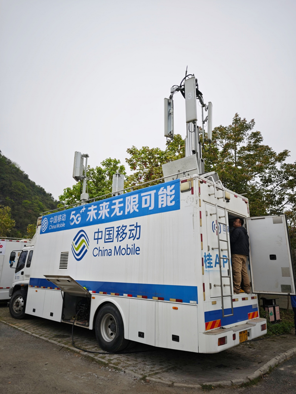 作为赛事核心枢纽,主会场承担选手集结、赛事直播、颁奖仪式等关键环节,短时间内人流高度聚集,叠加高清直播、应急指挥、即时分享等高频通信需求,对网络承载能力提出严苛考验。为确保信号“全程满格”,柳州移动鹿寨分公司提前部署、精准施策;团队率先开展主会场及周边区域精细化勘测,精准定位信号盲区与流量峰值节点,量身定制“定点覆盖 + 动态扩容”专项方案;赛前完成周边基站参数优化与信道资源预留,显著提升网络并发处理能力。应急通信车在赛事前2天就提前进驻主会场核心位置,通过车载基站强化信号覆盖,技术团队反复测试语音通话、高清视频传输、5G高速下载等场景性能,确保设备以最佳状态待命。针对赛道智能机器人表演及陪跑需求,柳州移动鹿寨分公司从海后部队调配CPE设备,为科技元素融入赛事提供稳定通信支撑,让智能陪跑成为赛道上的亮眼风景。