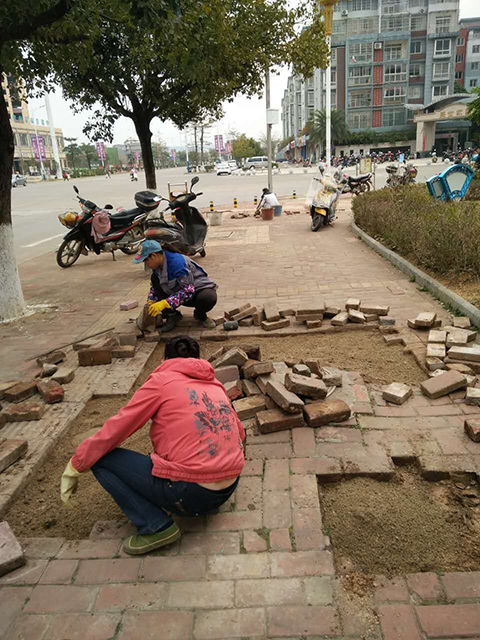 城南破损人行道的修复和停车位的重新划定工作也在紧张进行中。