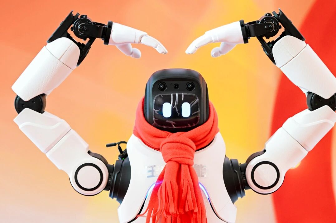 ·伸出手,机器人的机械臂稳稳回应你,为你送上专属的“科技击掌”;
