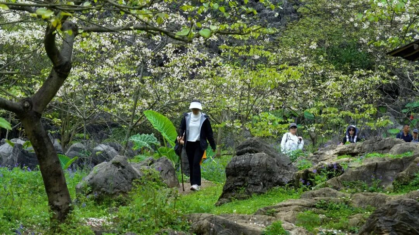 据悉,山尖村油桐花的花期为3月底至4月中下旬,想要前往观赏的游客,可直接导航柳州市鹿寨县中渡镇山尖村或花麻屯,小车可根据路标指示及村民指引,开往山脚的小型停车场,停车费为20元/车,停车后徒步半小时即可到达油桐花谷;也可以选择在村委或周边免费停车,再徒步1.5小时进入花谷。此外,该地为喀斯特地貌,岩石坚硬锐利,建议游客穿防滑鞋、戴手套,备好雨衣、饮用水和干粮,做好充分准备,才能更好地沉浸式体验春日美景。(王孝强 李林洪 托合提古丽·阿卜杜克热木 龙启鹏)