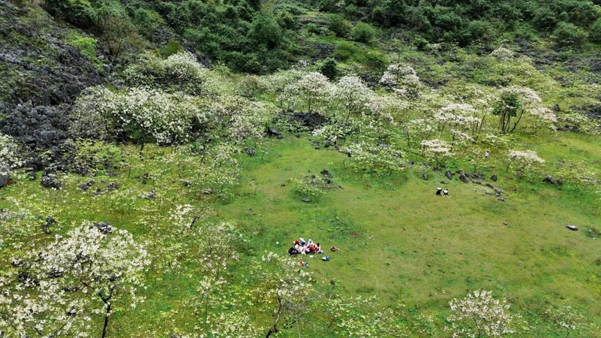 近年来,户外徒步热潮持续升温,山尖村的油桐花海路线也成了众多徒步爱好者的心仪之选。他们三五好友结伴而行,背着背包、手持登山杖,络绎不绝地穿梭于山林花海之间。不少摄影爱好者也被这里的美景所吸引,纷纷用相机、无人机定格下每一个美好的瞬间。一些游客还带着露营、野炊装备,打算在花树下放松身心,看油桐花随风摇曳,看狗儿在草地撒欢,看山羊在林间悠闲踱步,远离城市喧嚣,尽情享受这份难得的宁静与惬意。