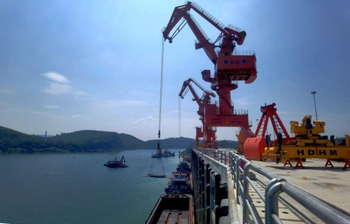 ▲柳州港江口作业区吊装货物现场。(莫芳/摄)