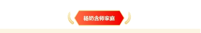 杨奶含师一家曾获评柳州市“最美家庭”、“十星级文明户”,坐落于广西三江县独峒镇。四十余年来,杨奶含师不顾生活艰难,悉心照料家中4位无自理能力老人,还主动抚养婆家妹的四儿两女直至成年。她以言传身教培育孝老爱亲家风,孩子们和睦相处、积极向上,大儿子投身军营报效祖国。全家团结和睦、尊老爱幼,杨奶含师还热心帮扶邻里,用实际行动诠释传统美德,成为村里孝亲敬老、带动脱贫的榜样。