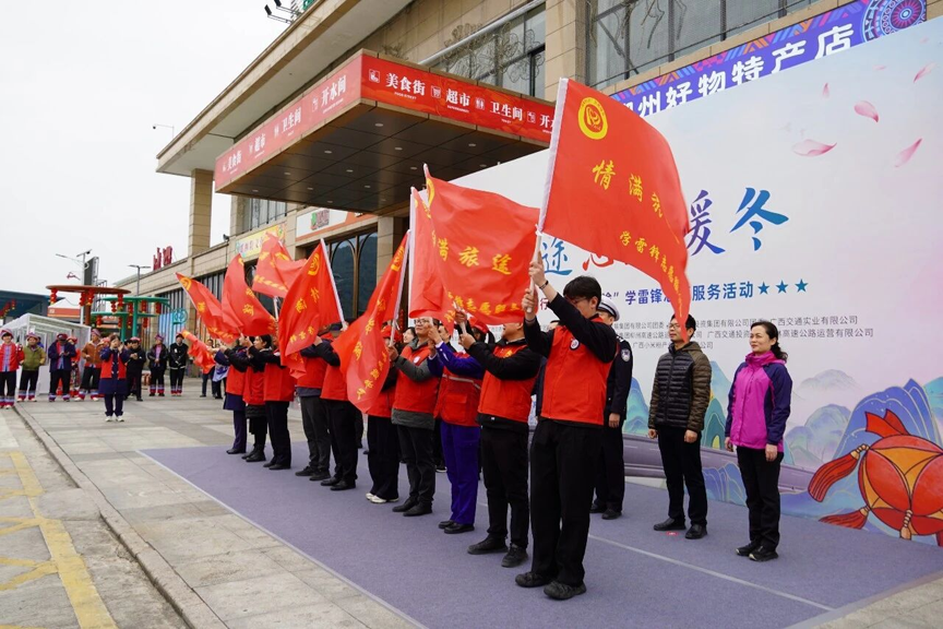 2月2日,2026年广西交通运输行业“情满旅途”学雷锋志愿服务活动在广西交投集团鹿寨服务区正式启动。志愿者们以暖心的行动、看得见的身影,共同护航“平安春运、便捷春运、温馨春运”,为旅客铺就温暖回家路。